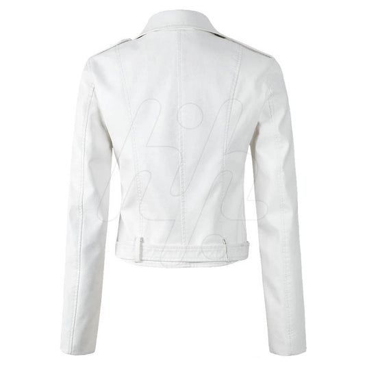 Women's Short Slim High Waist Motorcycle Leather Jacket