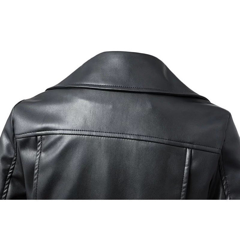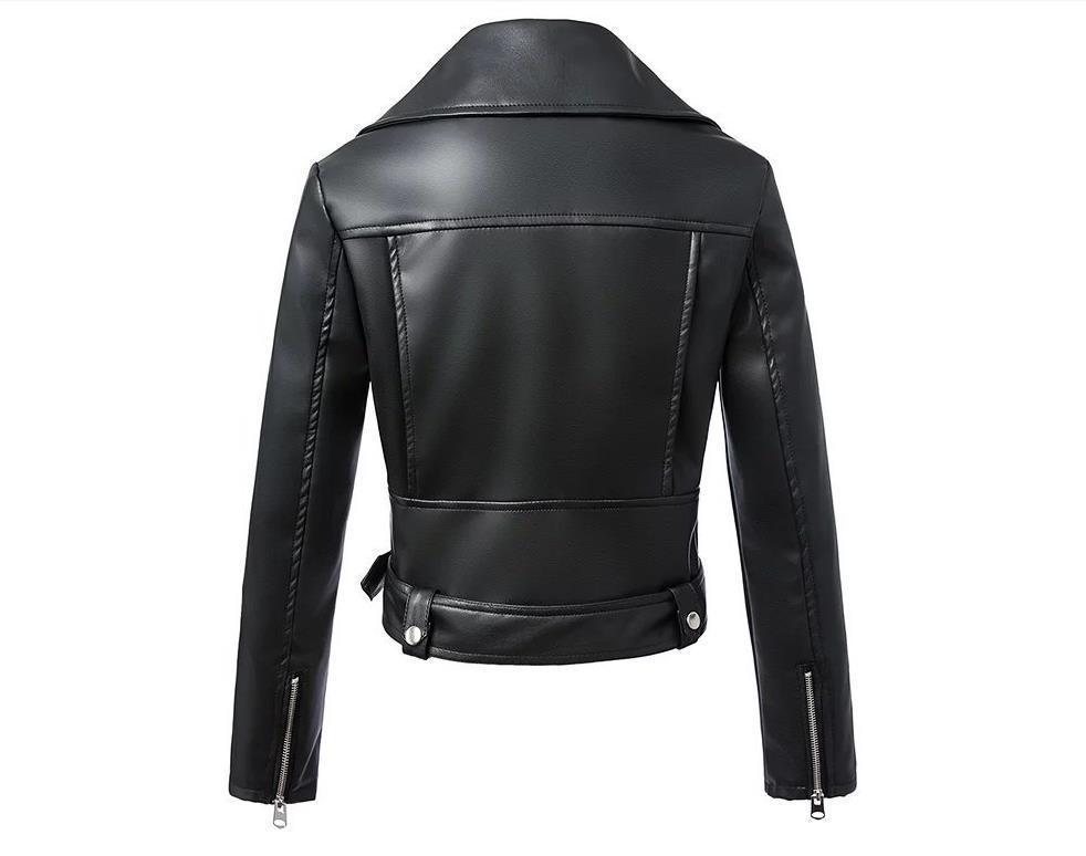 Women's Short Slim High Waist Motorcycle Leather Jacket